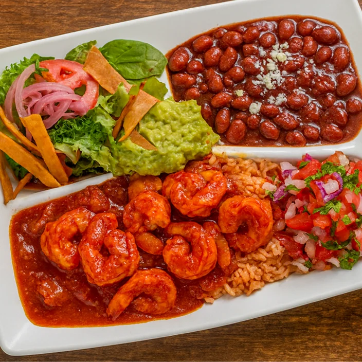 Butterflied shrimp sautéed in a spicy Mexican chile sauce with our house seasoning.
